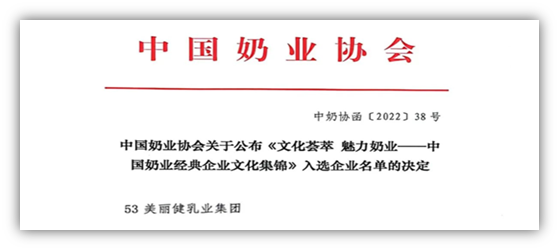为展示中国奶业发展自信,体现中国奶业基因传承的文化底蕴,会议开幕式隆重举行了“奶业人的自信情怀”主题活动,发布了《文化荟萃 魅力奶业——中国奶业经典企业文化集锦》,宣读了《中国奶业协会关于公布<文化荟萃 魅力奶业——中国奶业经典企业文化集锦>入选企业的通知》。经自主申报和专家评审,决定浙江美丽健乳业有限公司入选,这无疑是对美丽健乳业在企业文化建设中取得的光耀成果的肯定,展现了美丽健百年发展历程的企业文化自信情怀。