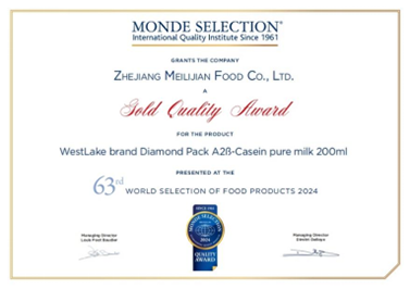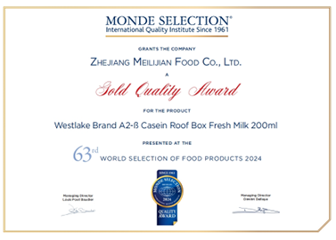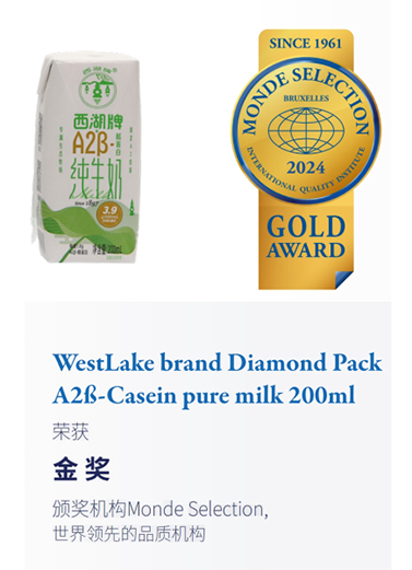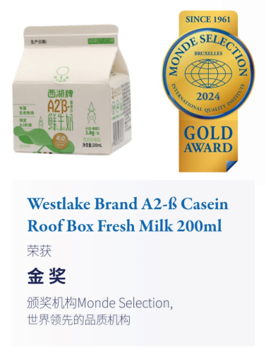 西湖牌旗下两款热门产品——西湖牌A2β-酪蛋白鲜牛奶、纯牛奶同时斩获两金,品质获得国际权威认可。